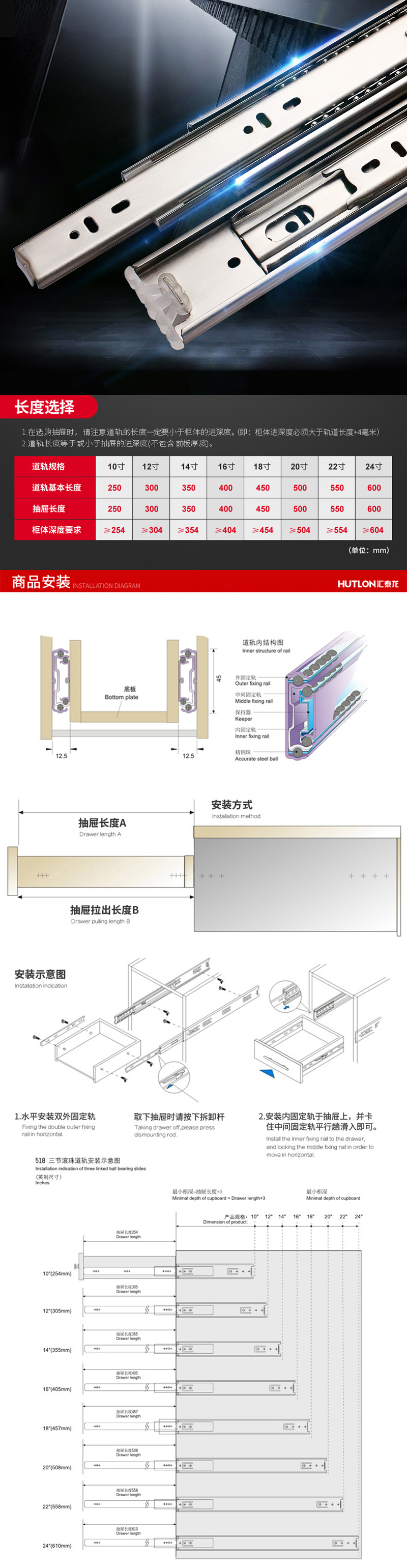 特點(diǎn):三節(jié)結(jié)構(gòu),4排滾珠聯(lián)動(dòng),抽拉穩(wěn)定平順,耐用性好,安裝便捷