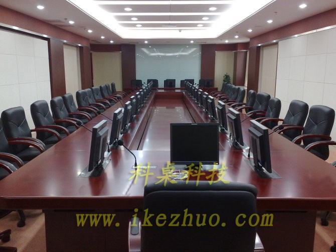 從會(huì)議桌下面升到桌面、◆當(dāng)不使用顯示器時(shí),◆升降機(jī)自動(dòng)下降,◆顯示器隱藏在會(huì)議桌內(nèi),◆起到防塵,◆防盜,◆保持桌面平整美觀。
