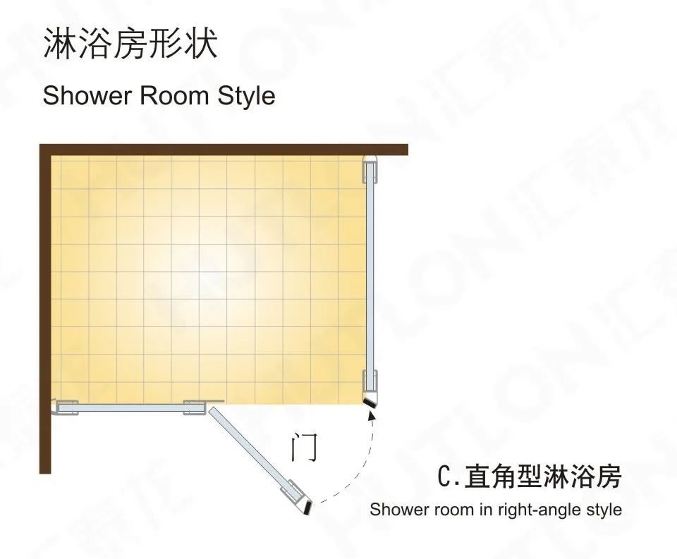 直角型淋浴房,用兩面玻璃與兩面墻一起組成方形,占據(jù)衛(wèi)生間的一個角落,更多是正方形的衛(wèi)生間使用。