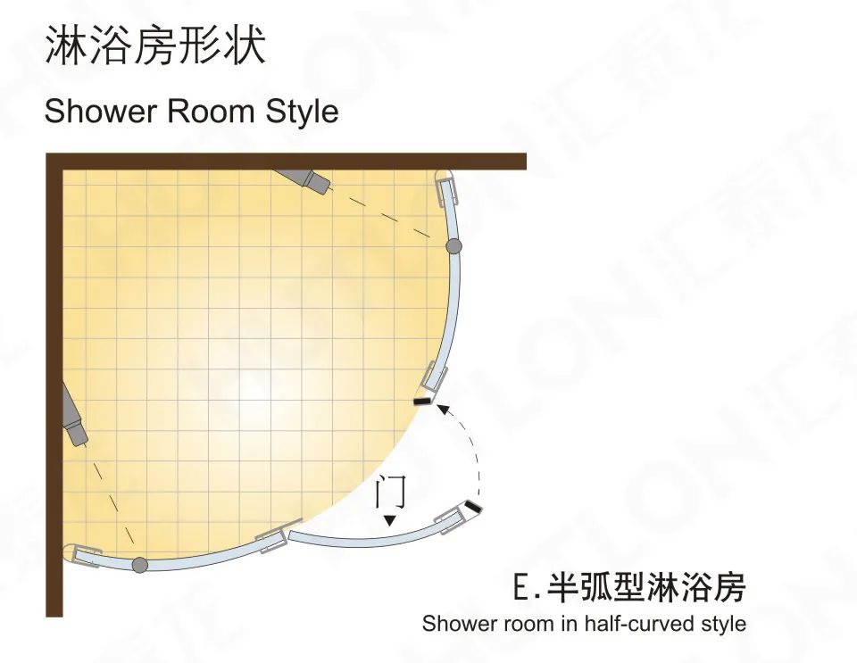 淋浴房主要有平面型、鉆石型、直角型和半弧型四種形式。