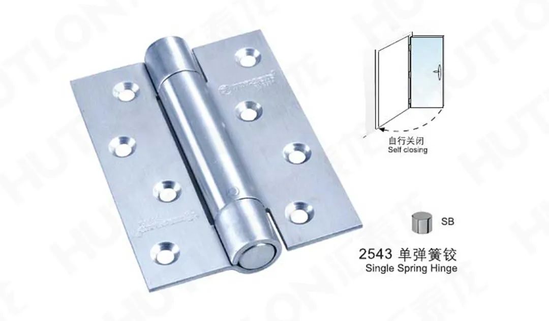 單彈簧鉸:使門扇可在拉開后依靠合頁彈力自行關閉,適用于一般性通道門使用。