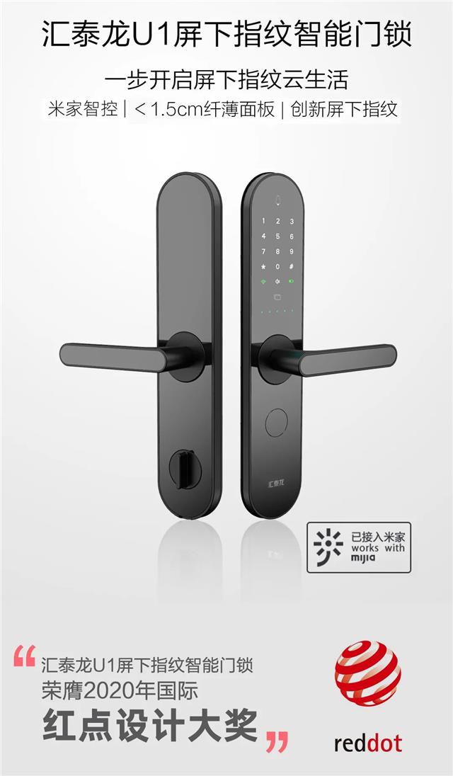 匯泰龍U1纖薄屏下指紋智能鎖應(yīng)運(yùn)而生,U1屏下指紋智能鎖,以Ultra thin(超薄)與Under Glass(屏下指紋)為設(shè)計(jì)理念,擁有<1.5cm厚度的炫酷面板外觀、屏下指紋、米家智控、五種開鎖方式、十五重安全防護(hù)等黑科技、安全的功能,榮獲“德國(guó)紅點(diǎn)產(chǎn)品設(shè)計(jì)獎(jiǎng)”。