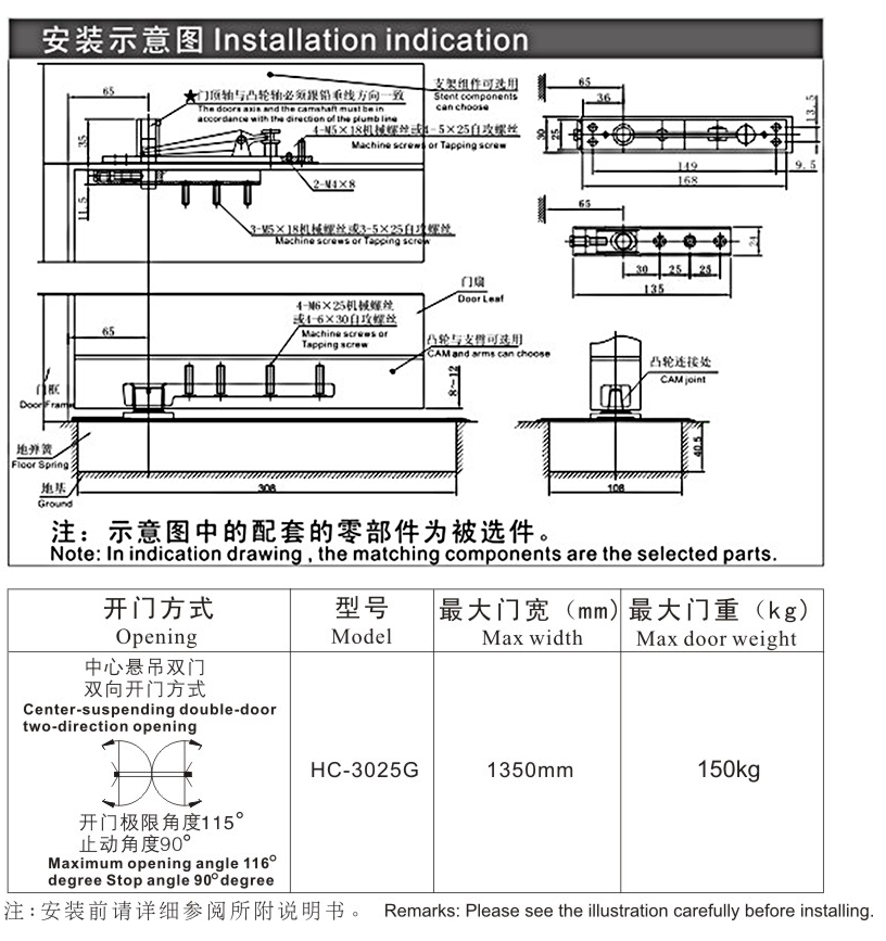 主要功能:雙向120°開啟功能、90°準確停位