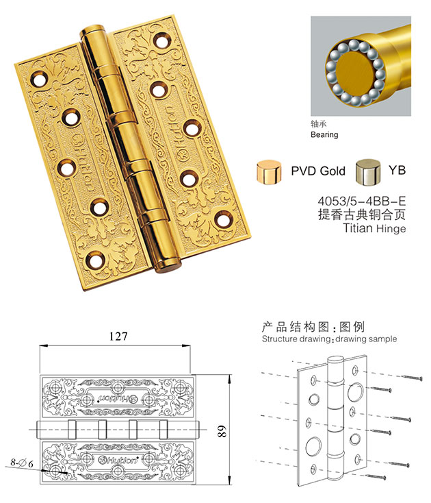 4053/5-4BB-E古典銅合頁 提香系列