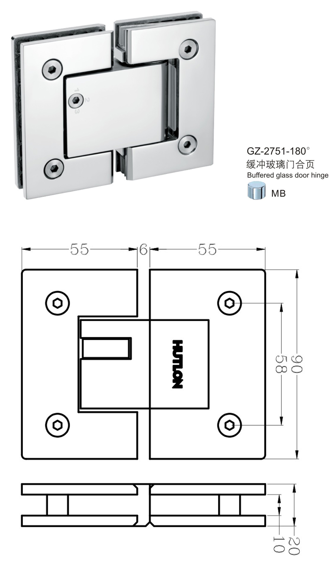 GZ-2751-180° 緩沖玻璃門(mén)合頁(yè)