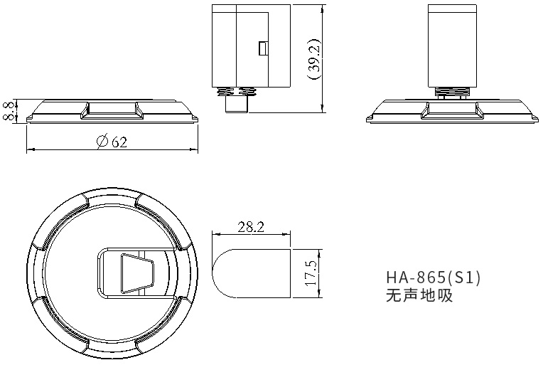 匯泰龍HA-865無聲地吸采用機(jī)械式固定門扇,當(dāng)門吸頭進(jìn)入門吸座體的時(shí)候,帶動(dòng)底座的旋轉(zhuǎn),底座“緊緊摟住”門吸頭,達(dá)到停門功能。