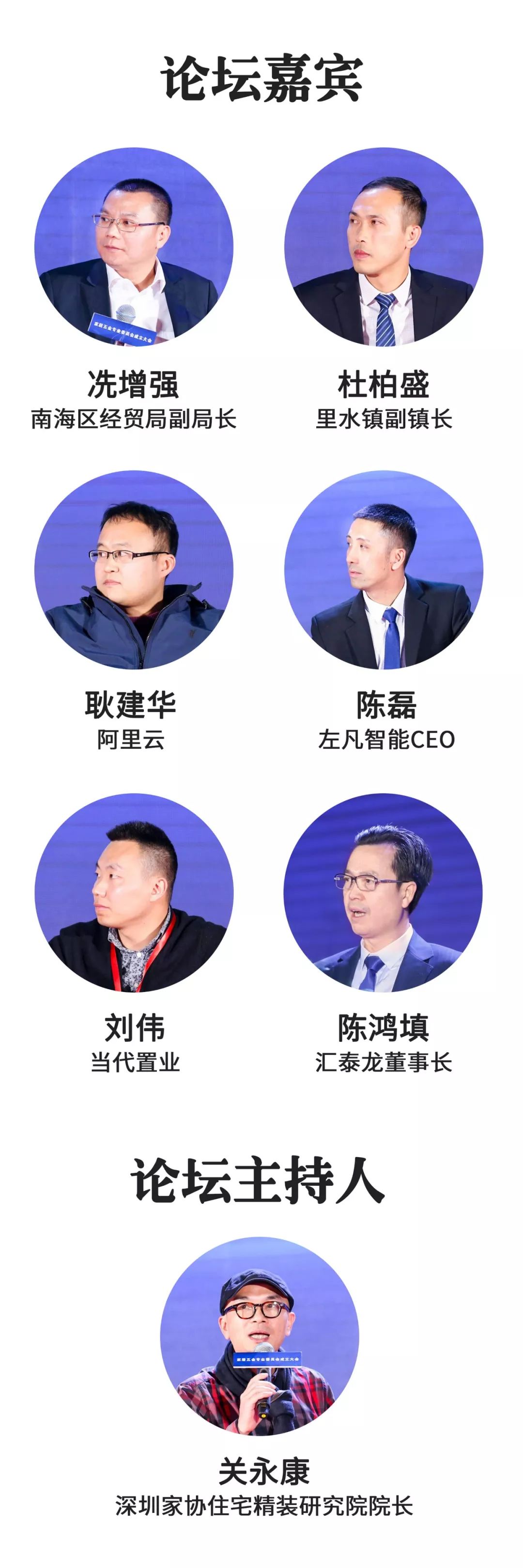 南海區(qū)經(jīng)貿(mào)局副局長冼增強先生、里水鎮(zhèn)副鎮(zhèn)長杜柏盛先生、住宅精裝研究院院長關(guān)永康先生、阿里云耿建華先生、左凡智能CEO陳磊先生、當代置業(yè)劉偉先生、匯泰龍董事長陳鴻填先生出席本次里水智能家居小鎮(zhèn)崛起與發(fā)展高峰論壇。