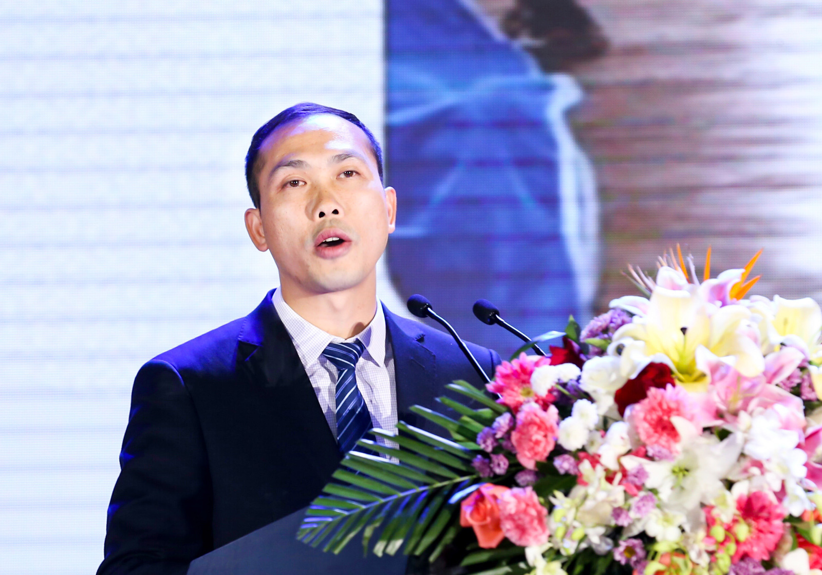 ▲廣東省佛山市南海區(qū)政府代表、里水鎮(zhèn)杜柏盛副鎮(zhèn)長發(fā)表“南海里水的投資環(huán)境”主題演講