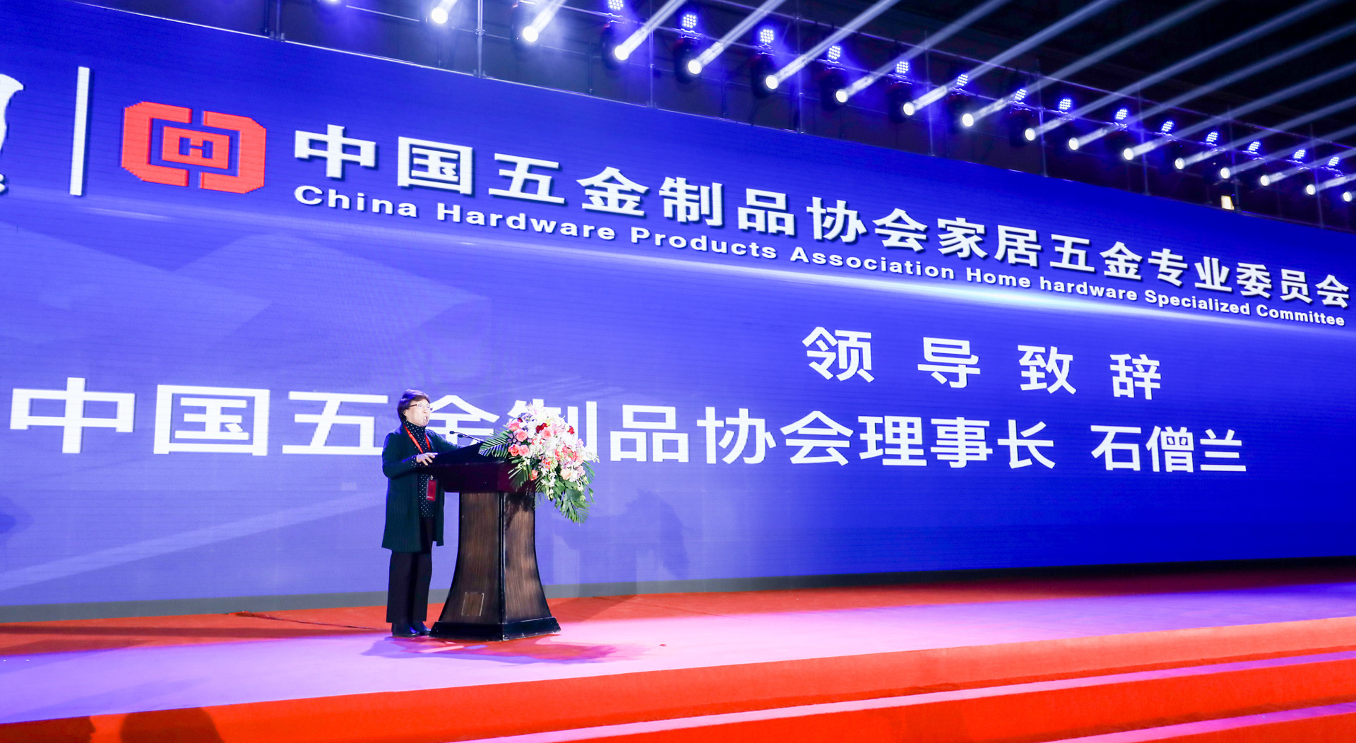 ▲中國五金制品協(xié)會理事長石僧蘭女士上臺作總結(jié)性講話