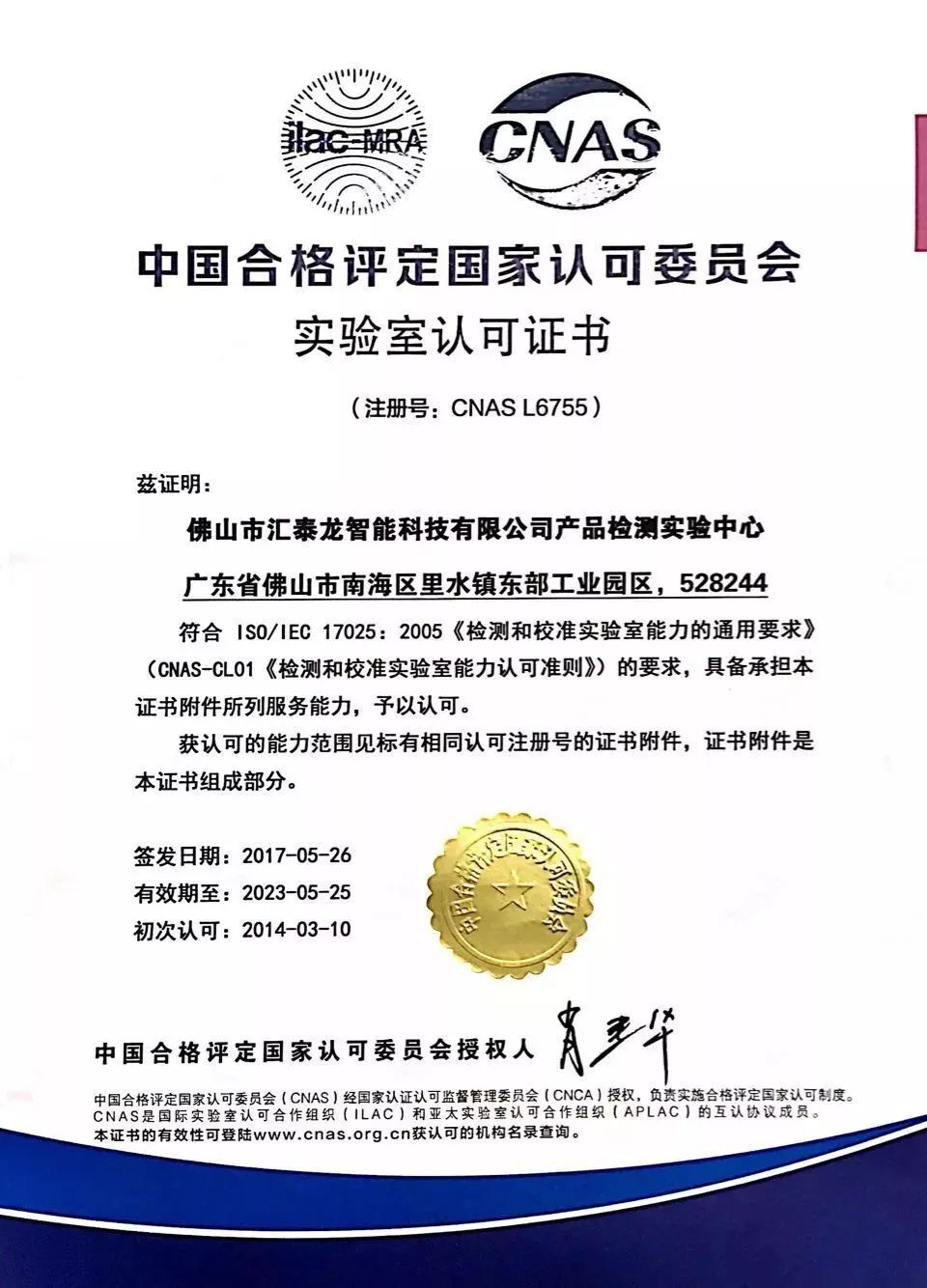 匯泰龍是智能鎖業(yè)內(nèi)鮮少的具有國家CNAS實(shí)驗(yàn)室認(rèn)可的企業(yè)。