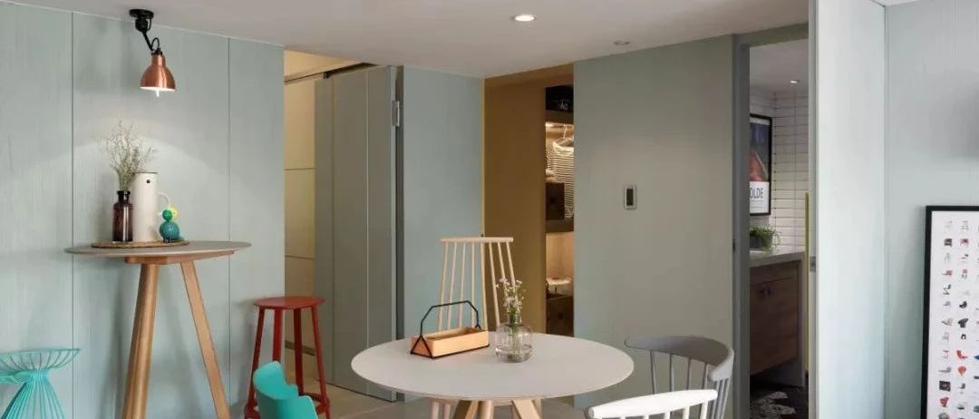 @Lee:小戶型,門換成隱形門,藏在電視墻里,裝完后的空間看起來確實(shí)增大很多,視覺效果不錯(cuò)。