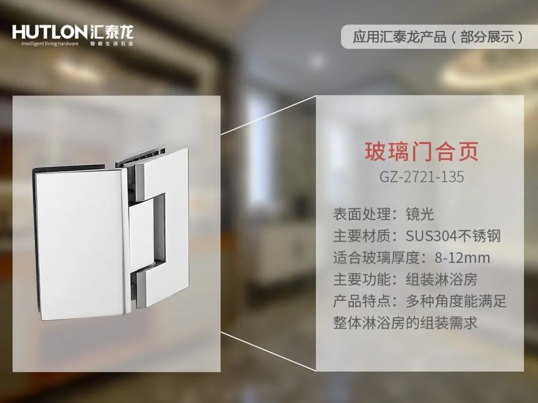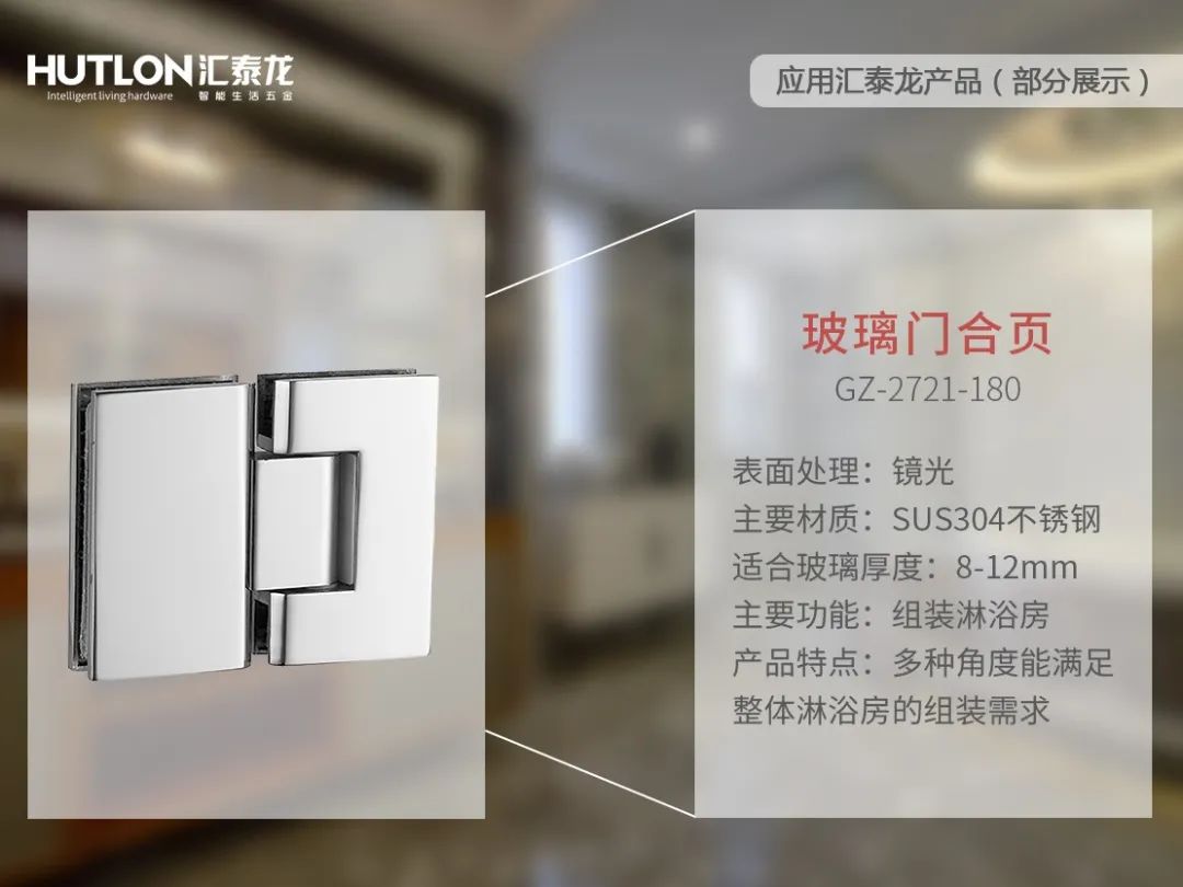匯泰龍為寧波江灣城在淋浴房選配了玻璃門合頁,滿足整體淋浴房的組裝需求,多角度開合,業(yè)主使用更方便。
