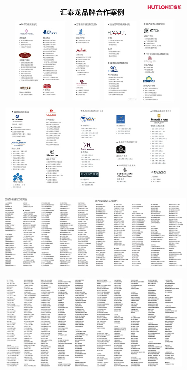 專業(yè)專注,誠(chéng)信共贏。25年來(lái),匯泰龍為地產(chǎn)、家裝、酒店、門業(yè)、定制業(yè)、商業(yè)內(nèi)眾多知名品牌提供匯泰龍全屋智能精品五金解決方案,并憑借高質(zhì)量的產(chǎn)品、良好的口碑與信譽(yù)度,成為眾多知名品牌的合作伙伴。
