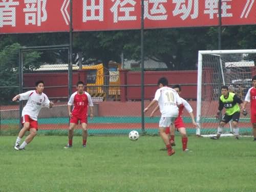 下午4:30球賽正式開始,兩隊(duì)立即展開了激烈的交鋒。只見匯泰龍隊(duì)隊(duì)員帶著球奮勇直闖,成功突破對方的防守,率先把球射進(jìn)對方球門。廣東元老隊(duì)也不甘落后,向匯泰龍隊(duì)發(fā)起了猛烈的進(jìn)攻,比賽開始30分鐘后,一腳精彩的射門,贏得了觀眾熱烈的歡呼和掌聲。