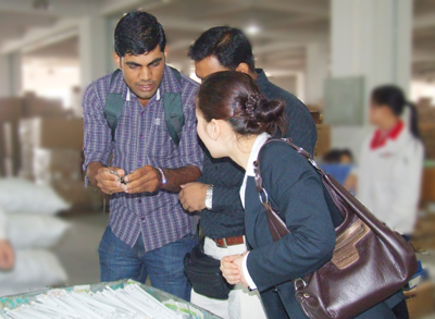 外商向我司工作人員詢問(wèn)產(chǎn)品知識(shí)