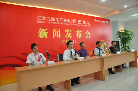 2010年6月11日匯泰龍新生產(chǎn)基地喬遷典禮隆重舉行。里水鎮(zhèn)人民政府副鎮(zhèn)長(zhǎng)葉劍輝、中國(guó)建筑裝飾協(xié)會(huì)副會(huì)長(zhǎng)王冶、匯泰龍五金衛(wèi)浴制造有限公司總經(jīng)理陳鴻填、匯泰龍客戶代表浙江匯豐建材有限公司董事長(zhǎng)賀葉江先生、匯泰龍五金衛(wèi)浴制造有限公司營(yíng)銷(xiāo)副總徐振忠先生等出席了匯泰龍新生產(chǎn)基地喬遷的新聞發(fā)布會(huì)。