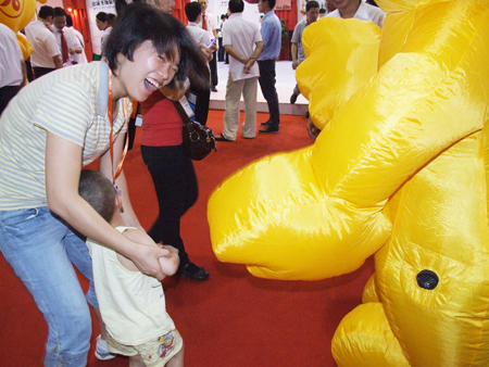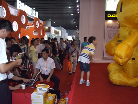 展館外,創(chuàng)意無限的展臺形象,逗留在匯泰龍展臺前的觀眾爭先合影留念,一分鐘快照項目讓觀眾留下了美好的回憶。可愛逗趣的匯泰龍吉祥物——星Q互動,吸引了眾多參觀者的眼球,匯聚了全場最高的人氣,讓匯泰龍展臺一如往年成為展會的人氣中心。
