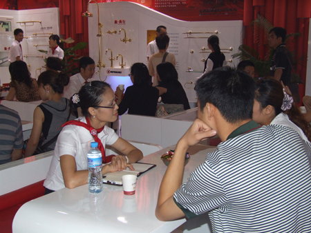 二樓的商務洽談區(qū),前來表示合作意向的客商絡繹不絕,匯泰龍公司準備了精美的糖果和茶水,溫馨舒適的商務洽談環(huán)境無不表達出匯泰龍公司對工作細節(jié)的注重,經過專業(yè)系統(tǒng)禮儀培訓的工作人員為每一位進入洽談區(qū)的客商提供了細致周到的服務,給在專場參觀的觀眾留下了深刻的印象。