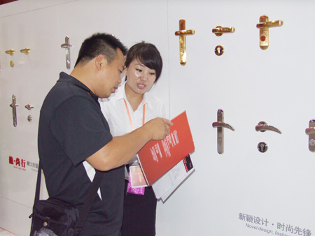 在每一個系列的產品前,公司都配備了一名專業(yè)的工作人員。這些匯泰龍工作人員具備五金衛(wèi)浴行業(yè)深厚專業(yè)知識,在現(xiàn)場對產品的設計、材質、性能、優(yōu)點等都作了詳細的講解。在匯泰龍新型電子門鎖展區(qū),工作人員現(xiàn)場演示了門鎖的操作方法,吸引了眾多客商的目光。