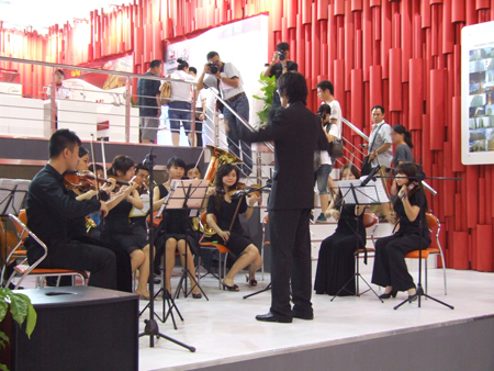 星海音樂學院交響樂團在匯泰龍展館內表演
