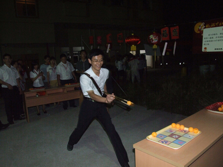 游園活動(dòng)在悠揚(yáng)應(yīng)景的節(jié)日樂曲中拉開惟幕。此次的游園活動(dòng)主體上分為十個(gè)有趣的小游戲,包括燈謎和競(jìng)技兩大類,這些小游戲包括迷你高爾夫、中秋燈謎、趣味乒乓球、激情背靠背等等。每一位員工都可以任意參加其中的游戲并依據(jù)規(guī)則得到兌獎(jiǎng)券,憑兌獎(jiǎng)券兌換獎(jiǎng)品。不到一會(huì)兒,每個(gè)游戲區(qū)域前就排滿了長(zhǎng)龍。大家饒有興致地參與其中。在猜燈謎活動(dòng)區(qū)域,同事們或者獨(dú)自揣摩,或者三五個(gè)商量,好不熱鬧。在一些競(jìng)技類的小游戲中,同事們更是斗志昂揚(yáng),在娛樂中展現(xiàn)智慧,勝利的笑容隨處可見,此次的活動(dòng)中,公司的所有管理層也積極參與游戲活動(dòng),在小小的競(jìng)技場(chǎng)上一分高下。在兌獎(jiǎng)區(qū),擺滿了實(shí)用豐富的獎(jiǎng)品,處處可見兌到獎(jiǎng)的同事笑容滿面地走出來,整個(gè)游園活動(dòng)現(xiàn)場(chǎng)熱門非凡,笑聲不斷。