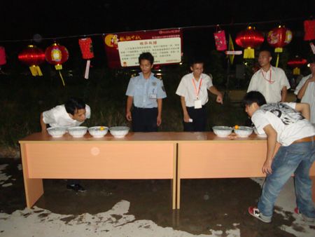 對(duì)匯泰龍公司的員工來說,9月29日的夜晚,這是個(gè)充滿激情和歡樂的夜。匯泰龍佛山南海公司的廣場(chǎng)上燈火通明,人聲鼎沸。火紅的燈籠掛滿了廣州的整個(gè)角落,紅色的燈籠、紅色的綢帶、紅色的主題背景……一片紅色的主色調(diào)和著歡快悠揚(yáng)的樂曲,烘托出喜慶和吉祥的節(jié)日氣氛。柔和的燈光照在每一位員工的臉上,顯露出歡樂和幸福的笑容,全體匯泰龍同事聚集在這里參加“慶中秋,迎國(guó)慶”中秋游園活動(dòng)。