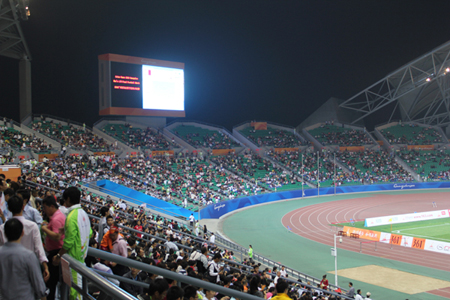 來到賽場,大家井然有序的通過安保檢查進(jìn)入賽場,共同觀看本次卡塔爾和烏茲別克斯坦的足球比賽。精彩激烈的比賽顯示出這兩支亞洲強(qiáng)隊(duì)的水平,恢宏大氣、設(shè)施一流的三萬人體育場也為廣大的亞運(yùn)球迷提供了一個歡樂的舞臺,所有觀眾隨著比賽的進(jìn)行激情投入,全情吶喊助威,人浪疊起,聲威不斷,情緒高漲。