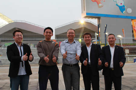 為了配合嚴(yán)格的亞運(yùn)安保工作,下午4點(diǎn),在公司市場部工作人員的帶領(lǐng)下,總經(jīng)理陳鴻填及公司高層陪同匯泰龍經(jīng)銷商客戶乘坐大巴提前前往廣州大學(xué)城體育中心體育場,沿途觀賞了本次亞運(yùn)會開幕式的主會場海心沙和廣州新地標(biāo)小蠻腰,熊熊燃燒的亞運(yùn)圣火點(diǎn)燃了大家的亞運(yùn)激情。沿途整潔、美麗的廣州街景也給經(jīng)銷商朋友留下了深刻的印象。路途中不少人開始興奮的分析評價參賽球隊(duì),預(yù)計(jì)比賽結(jié)果,充滿了興奮和期待。