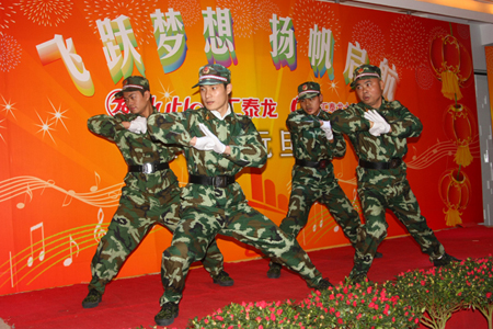 新年的鐘聲即將敲響, 豐收的喜悅正在綻放,2010年12月30日晚7點(diǎn),主題為“飛躍夢想,揚(yáng)帆啟航”的匯泰龍2011年元旦晚會在佛山南海生產(chǎn)基地多功能會議廳拉開惟幕。
