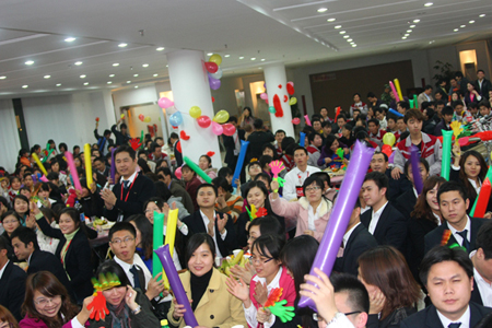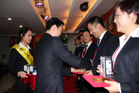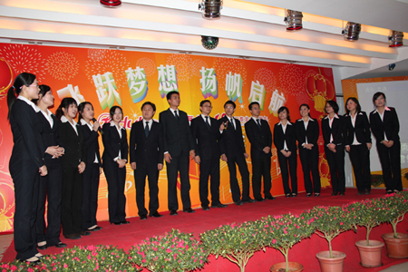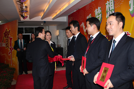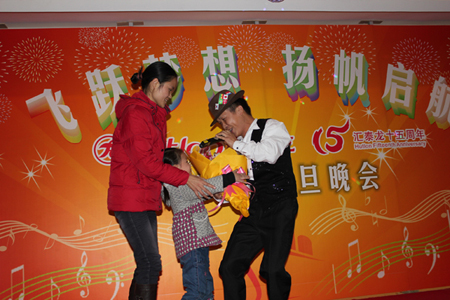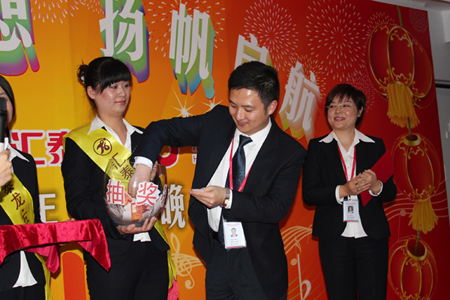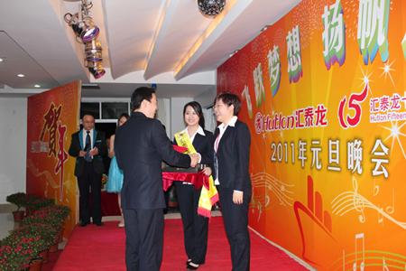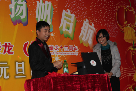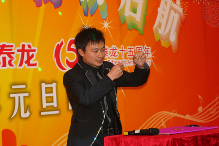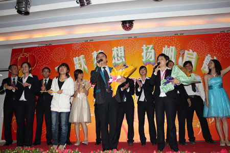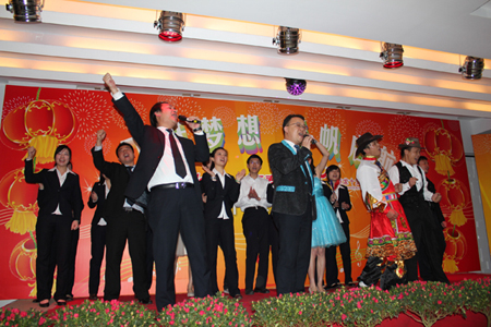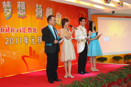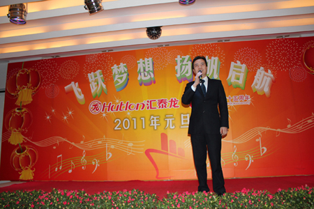 在四位主持人的引導(dǎo)下,陳董上臺發(fā)表新年賀辭,他首先向大家總結(jié)了我們在2010年取得的輝煌的成績,肯定了一年來全體匯泰龍人的付出和努力,描述了2010年我們?nèi)〉玫呢S碩成果,也表達(dá)了公司在2011年新的展望和目標(biāo)。最后,他熱情洋溢地表達(dá)了對在場所有的員工和員工家人新年的祝福,在場的員工深受鼓舞,報(bào)以雷鳴般的掌聲。