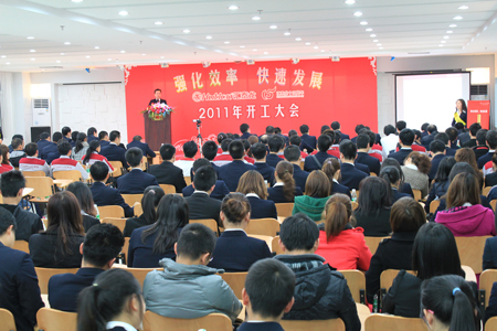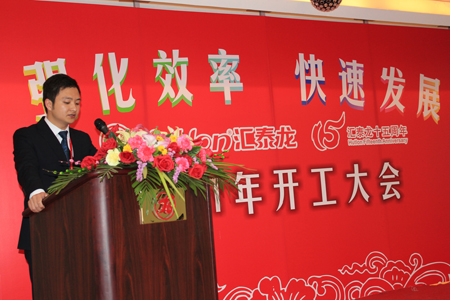 6點(diǎn)半,開工大會(huì)準(zhǔn)時(shí)開始,董事長陳鴻填先生首先向公司全體員工及員工家人朋友表達(dá)了新年祝福!接著,陳董以“新起點(diǎn),新目標(biāo)”為主題,和大家共同回顧過去一年全公司所取得的成績,共同檢討過去一年中的不足,闡述公司未來三年的主要發(fā)展規(guī)劃和思路。董事長最后對2011年主題文化——效率年作了詳細(xì)的的詮釋,自此匯泰龍進(jìn)入“強(qiáng)化效率,快速發(fā)展”的效率年。