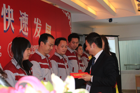 董事長和總經(jīng)理發(fā)言后,在此次開工大會(huì)上對2010年度評選出的優(yōu)秀員工和執(zhí)行力標(biāo)兵頒發(fā)了榮譽(yù)證書和獎(jiǎng)勵(lì)。本次共評選出執(zhí)行力標(biāo)兵15人,優(yōu)秀員工49人,由董事長和總經(jīng)理分別對獲獎(jiǎng)人員頒發(fā)榮譽(yù)證書。