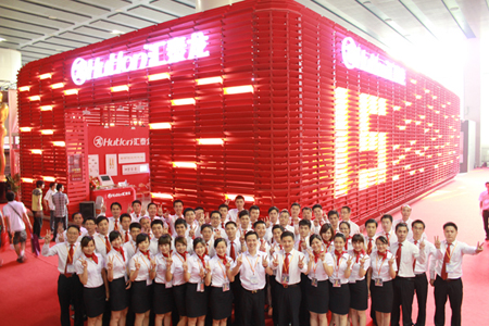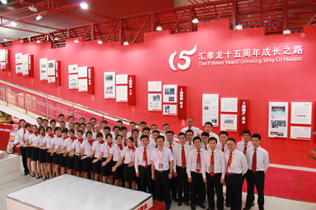 求實(shí)、向上、敬業(yè)、和諧的匯泰龍團(tuán)隊(duì),展會(huì)工作人員在展館內(nèi)合影
