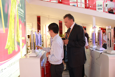 國(guó)外客商觀看新產(chǎn)品展示