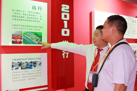 2011年7月8日—11日,第十三屆中國(guó)(廣州)國(guó)際建筑裝飾博覽會(huì)在廣州國(guó)際會(huì)議展覽中心隆重開幕。廣州建博會(huì)被譽(yù)為“亞洲建材第一展”,是全球最具影響力的建筑裝飾行業(yè)盛會(huì)之一。從1999年以來(lái),匯泰龍都積極參與,并以精彩紛呈的表演,演繹了獨(dú)具特色深厚的品牌文化底蘊(yùn)。本屆展會(huì),匯泰龍更是走在時(shí)代的前沿,以“龍.聚升”為主題展現(xiàn)了“時(shí)尚、生態(tài)、健康”在現(xiàn)代人類宜居生活空間中的重要性,另外,匯泰龍展館中彰顯匯泰龍十五周年品牌發(fā)展歷程的歷史長(zhǎng)廊,更讓每一位參展客商深刻感受到了匯泰龍品牌濃厚的企業(yè)文化重量。