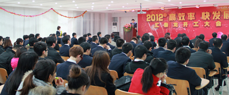 在開工大會上,首先由總經(jīng)理徐振忠先生發(fā)表講話。徐總利用非常嚴謹、詳盡的統(tǒng)計數(shù)據(jù)總結了十七項匯泰龍公司2011年在內(nèi)部管理、大型商務營銷活動、營銷渠道和營銷網(wǎng)絡建設、品牌建設、財務管理、供貨及研發(fā)能力進一步提高等各個方面取得的成績。同時,徐總也從數(shù)據(jù)的演示中客觀地指出了公司2011年發(fā)展過程中一部分不足 ,也帶領大家對各項不足的項目進行了非常深入和實際的原因分析,對大家在新的一年發(fā)揚成績、改進不足提供了明確的方向和嚴格的要求。接著,徐總在講話中提出了匯泰龍公司2012年整體的工作計劃,提出了以業(yè)績增長為核心,以目標達成為手段,營銷管理、科技創(chuàng)新、優(yōu)化管理并駕齊驅(qū)的管理模式。在2012年管理模式下,在新的起點、新的目標、新的環(huán)境下,公司和徐總對各個職能部門的全體管理人員提出了新的要求和期望,提出了具體的可量化考核的目標。