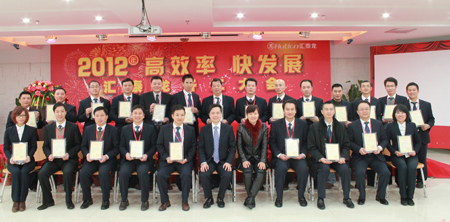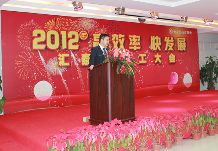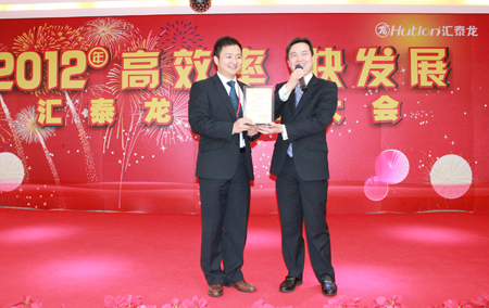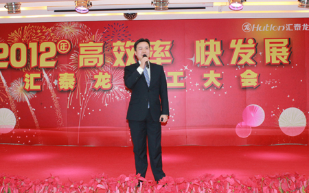 在徐總講話結束后,董事長陳鴻填先生也受邀發(fā)表了演講。陳董首先對匯泰龍公司全體人員2011年共同努力取得的成績表示了肯定,對公司2012年在各項資源投入作出說明,提出了2012年第二個效率年“高效率 快發(fā)展“的企業(yè)文化主題和新的定義,提出了全體匯泰龍人保持激情的重要性,最后,陳董對公司的團隊建設、業(yè)績、營銷等方面提出了展望。