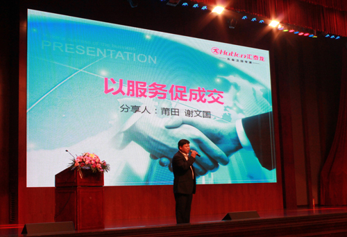 隆重的頒獎活動以后,莆田經(jīng)銷商謝文國先生、常州經(jīng)銷商王海兵先生分別分享了提升門店服務(wù)和工程業(yè)務(wù)拓展方面的經(jīng)驗。兩位經(jīng)銷商依據(jù)自己多年來在門店銷售業(yè)績與工程業(yè)務(wù)渠道拓展方面取得的顯著成績和寶貴經(jīng)驗,利用簡單而極具代表性的案例與大家共同分享成功經(jīng)驗。