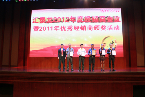 3月21日下午,匯泰龍公司對2011年度銷售中取得突出成績的經(jīng)銷商進(jìn)行了表彰,依據(jù)各種不同的綜合評獎標(biāo)準(zhǔn),共設(shè)立了最佳門店銷售獎、最佳銷售網(wǎng)絡(luò)拓展獎、最佳經(jīng)銷商獎、最佳工程拓展獎、最佳增長獎、最佳衛(wèi)浴銷售獎、鉑金經(jīng)銷商獎、最佳銷售獎八個獎項,有四十余家經(jīng)銷商獲得公司的隆重獎勵并頒發(fā)了證書和獎杯,并現(xiàn)場獲得了豐厚的獎品獎勵。各個獎項的獲獎經(jīng)銷商單位代表也紛紛上臺發(fā)表了獲獎感言,表達(dá)了與匯泰龍總公司共同進(jìn)步、加強(qiáng)合作的決心和信心。