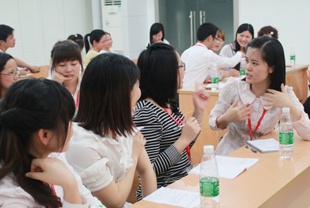 本次培訓(xùn)課程總共三個(gè)小時(shí),分為兩個(gè)部分:電話禮儀基礎(chǔ)知識(shí)講解和演練。講師首先講解了學(xué)習(xí)電話禮儀的重要目的、電話禮儀形象塑造、通話注意事項(xiàng)等等。在演練過程中,全體學(xué)員分為八個(gè)討論小組,每一組學(xué)員代表上臺(tái)當(dāng)場表演,由下面的學(xué)員通過剛剛學(xué)習(xí)的禮儀知識(shí)對(duì)表演者進(jìn)行點(diǎn)評(píng),整個(gè)培訓(xùn)課程氛圍活躍,互動(dòng)性強(qiáng),取得了良好的培訓(xùn)效果。