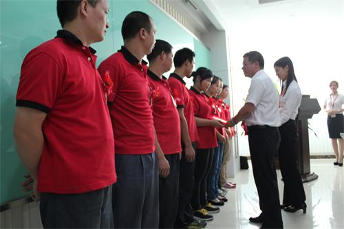 制造中心總監(jiān)莫志金先生為優(yōu)秀員工頒發(fā)榮譽(yù)證書(shū)