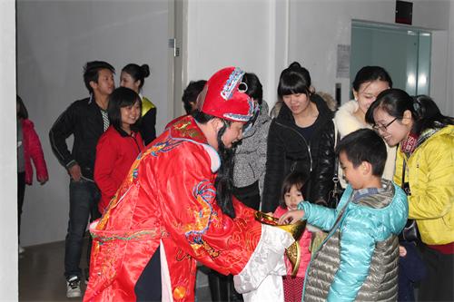 員工和員工家屬進(jìn)場時領(lǐng)取“財神爺”派發(fā)的糖果