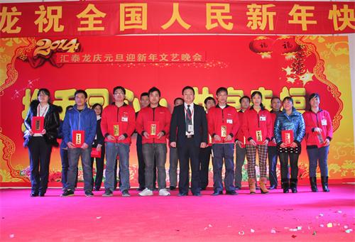 在四位主持人的引導(dǎo)下,陳董上臺發(fā)表新年賀辭,他首先向大家總結(jié)了我們在2013年取得的輝煌成績,肯定了一年來全體匯泰龍人的付出和努力,描述了2013我們?nèi)〉玫呢S碩成果,也表達(dá)了公司在2014年新的展望和目標(biāo)。最后,他熱情洋溢地表達(dá)了對在場所有員工和員工家人新年的祝福,在場的員工深受鼓舞,報以雷鳴般的掌聲。