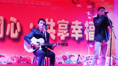 研發(fā)中心謝吉華和品控部邱紅炎表演吉他彈唱