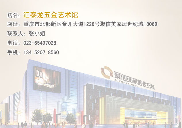 6月18日,重慶市聚信美家居世紀(jì)城「匯泰龍五金藝術(shù)館」盛大開業(yè),驚艷亮相重慶!