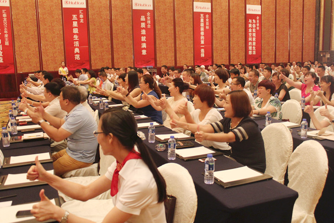 下半場會議環(huán)節(jié)中,匯泰龍公司董事長陳鴻填先生發(fā)表了《匯泰龍,在變革中升華》的主題演說,他在對目前市場行情及社會經(jīng)濟狀況分析時總結(jié)為“一切在變”----并從變化的速度越來越快、變的“千人千面”、變的人心浮躁(人才難以穩(wěn)定、難培養(yǎng)、人崗匹配度低下)、成本更高(人工、租金及裝修費用)、變的難上加難等5大點闡述了目前企業(yè)需要重視的突出問題。針對以上的問題陳董也在會上講解了總公司的應對之道:以快制快(唯快不破)、加速(產(chǎn)品、技術、營銷推廣方面)創(chuàng)新、多渠道發(fā)展、全品種經(jīng)營、重視團隊打造、改變固有的觀念(去陳存新、三個“不是,而是”)、以變應變、要有創(chuàng)業(yè)家精神共八大方面,通過客觀的事實案例分析及生趣的視頻分析讓廣大經(jīng)銷商朋友對企業(yè)在解決當前困難的事情上充滿信心。陳董最后強調(diào),未來生活的主流趨勢是智能化,無論是智能家居、智能廚房、智能手表等廣大消費者熟悉的日常用品都將趨于智能。匯泰龍未來的方向也會更加注重對科技的創(chuàng)新和提升產(chǎn)品智能體驗,帶領廣大經(jīng)銷商朋友搶占先機。