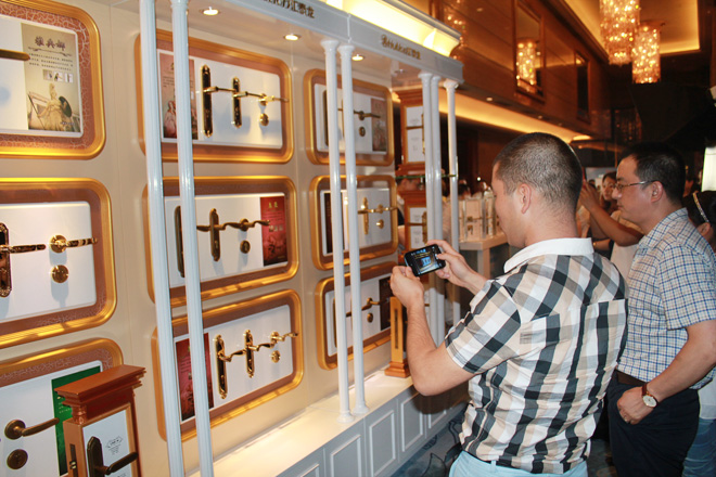 匯泰龍2014年度總經(jīng)銷商會議結(jié)束后,2014年度新產(chǎn)品發(fā)布會拉開帷幕——本次匯泰龍公司共發(fā)布了全新的“提香系列”、“藝薄”、“銅專利門鎖”三個系列共三十多種新產(chǎn)品。門鎖引領的全新設計風潮席卷全場,讓人目不暇接。發(fā)布會現(xiàn)場氣氛高漲,經(jīng)銷商對新產(chǎn)品信心十足。新品的面世定將使我們在未來的市場競爭中贏得更多的榮耀。