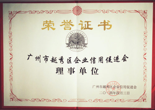 廣州市越秀區(qū)企業(yè)信用促進會理事單位榮譽證書