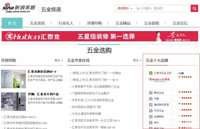 近日,由新浪家居五金頻道舉辦的《五金十大品牌》網(wǎng)絡(luò)評選結(jié)果正式公布,匯泰龍品牌榮獲網(wǎng)絡(luò)評選總評分第一名。
