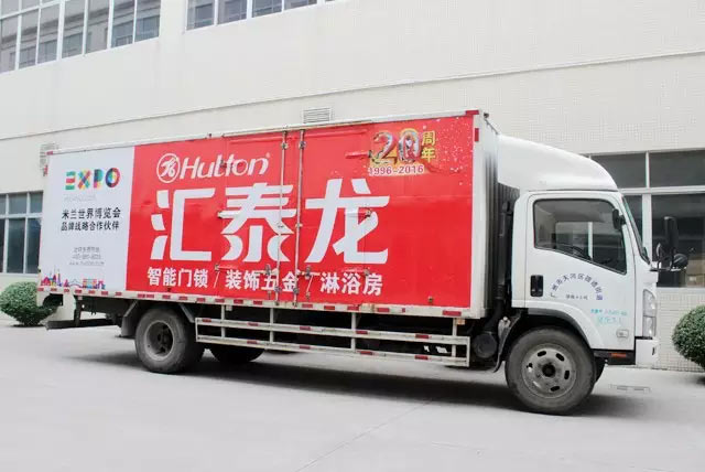 匯泰龍全部的貨車已經(jīng)更新了新的廣告,畫面里有匯泰龍標(biāo)準(zhǔn)的喜慶紅色,還有公司LOGO,加上米蘭世博會標(biāo)識,與匯泰龍20周年的元素融合在一起,簡潔又大氣,清新中不失優(yōu)雅!